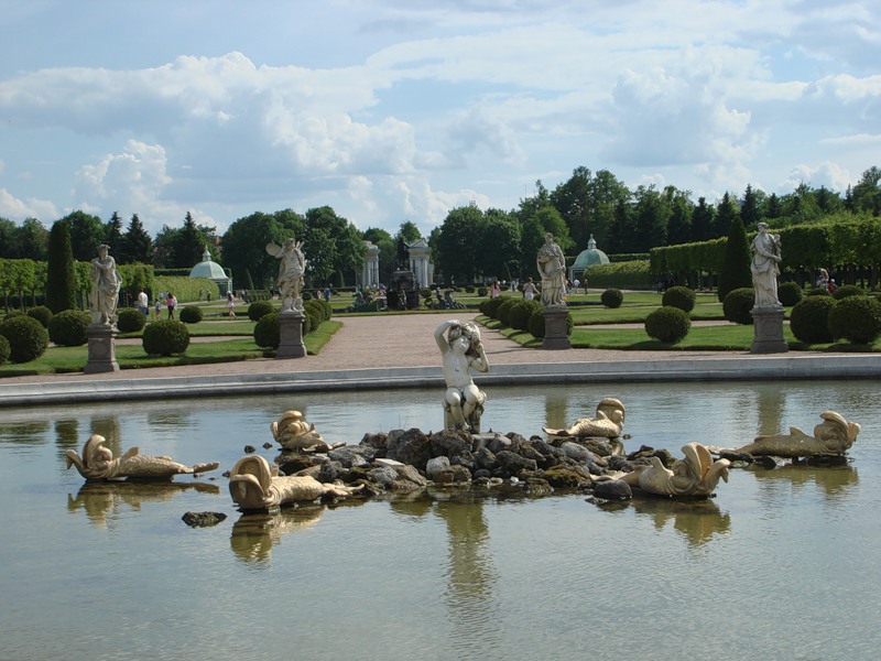 «Аллея фонтанов» начинается от ковша Большого каскада и продолжается по обоим берегам Морского канала.